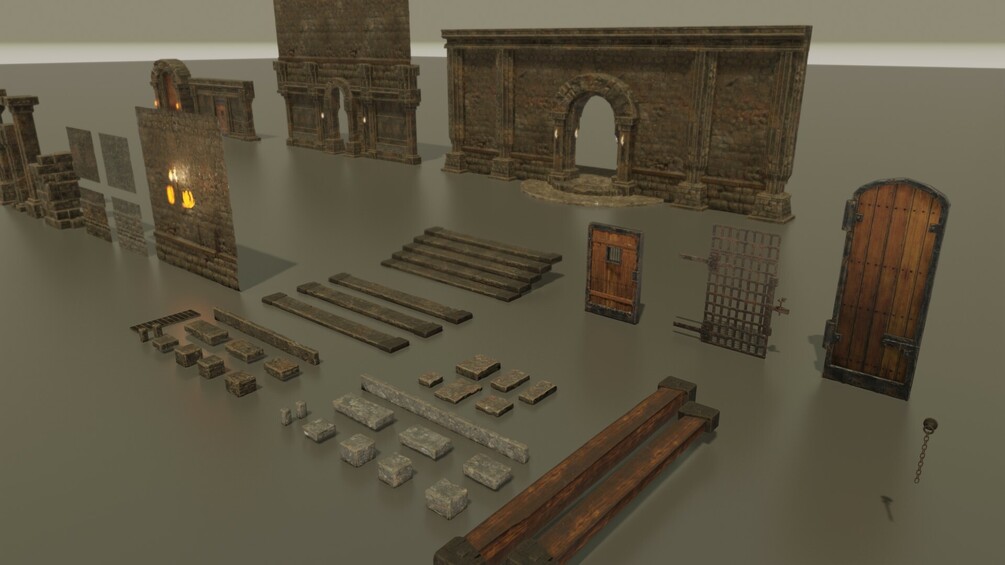 Create your own modular Dungeon areas using this 3D Kit for concept art. From Doors, floors, modular walls, archways, animated flame torch and more. This kit includes 4k textures for all the models. Characters in images NOT INCLUDED!